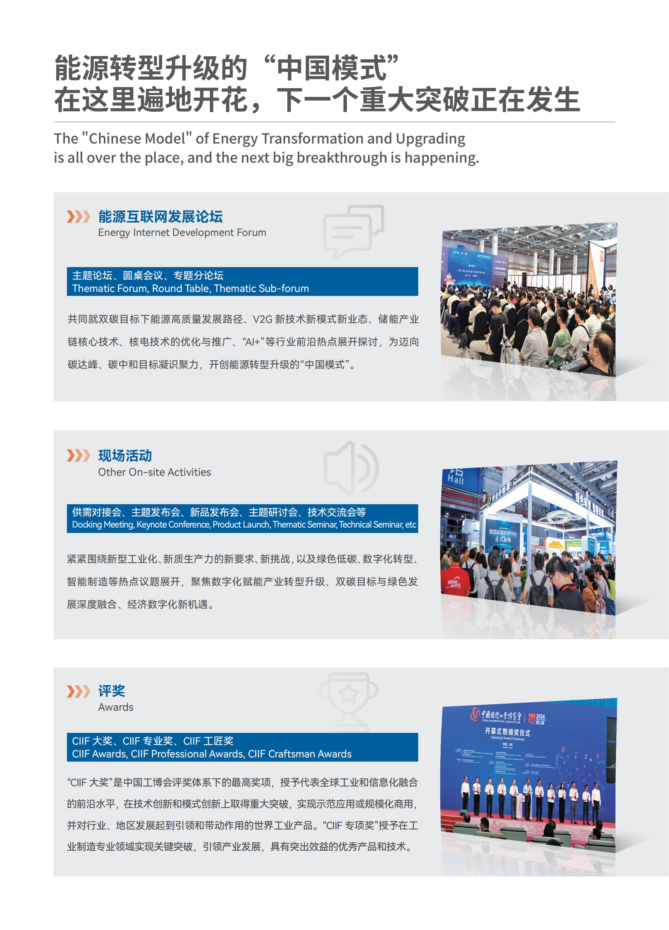 智慧能源展是中国国际工业博览会旗下聚焦能源领域的核心专业展之一,致力于服务国家能源战略,推动能源技术创新与产业升级,助力工业可持续发展。展会围绕“能源与工业融合发展”,重点展示核电、新能源、输配电、能源数字化、绿色智能系统解决方案等前沿技术与装备。2025年,将以核电专区联动电力自动化与新能源两大专区,集中呈现能源装备领域的最新成果。同期将举办发展论坛、供需对接会等现场活动,促进跨领域技术交流与合作,推动能源行业与工业体系深度融合。构建清洁低碳、安全高效的现代能源体系是全球能源行业的一致诉求,上届能源展优秀企业济济一堂,全面展示各类前沿能源制造设备和生产技术,为实现碳中和目标提供多元化解决方案,助推能源行业的转型升级。