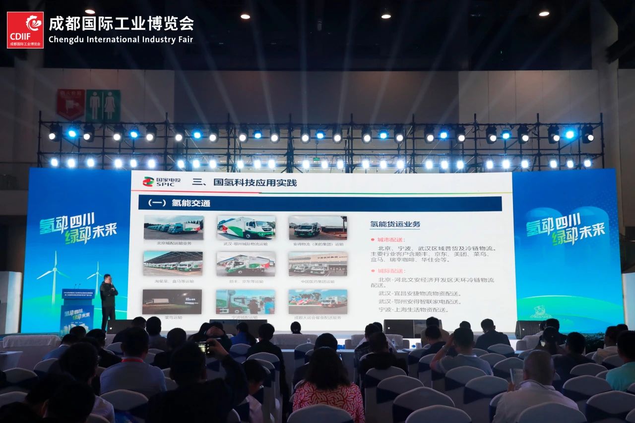 四川工业链博展中近50家氢能产业链上下游企业携手亮相,从氢气制备、储存到运输、应用等各个环节,都有相应的产品或方案进行展示。占据场馆C位的东方电气集团,展示了从制氢到储氢、氢交通到氢发电等领域的多项产品。在中国石化展台,新疆库车全球最大光伏发电制备绿氢示范项目模型吸引了不少业内人士的驻足。厚普股份作为国家企业技术中心,现场展示的储氢瓶体积只有1.55升,储存的100克氢气可以给两轮车供100公里的能源。再次亮相成都工博会的金星清洁能源带来了制氢、输氢、加氢、用氢环节的综合应用技术装备展示。四川荣创新能动力系统有限公司在本次展会上展示了第三代两百千瓦的燃料电池动力系统,今年3月全球首列氢能源市域列车搭载的氢燃料电池动力系统也出自该公司。