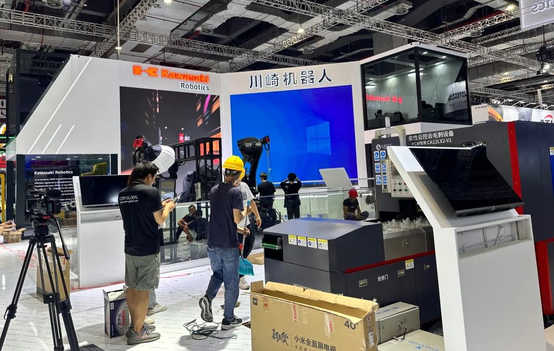 中心广场上,巨大的舞台和炫目的LED屏幕已经准备就绪,即将上演科技与工业的激情碰撞。展区内,虽然现场正在紧张施工中,但不少明星展品已经露出真容。全球各地的参展商纷纷在展位上展示了各自最新的产品与技术,科技感十足。