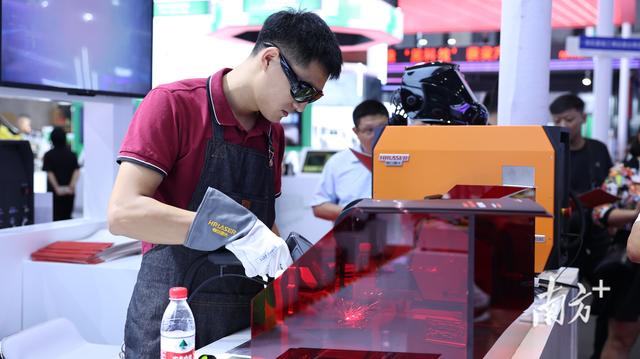 在大族激光智能装备集团(下称“大族激光”)展台,现场展示的大族光纤激光切割机中,包括控制系统和切割头在内都是自主研发产品,该切割机应用于五金加工类、汽车制造及机械制造等方面,出口欧美、日本、韩国等全球50多个国家和地区。“激光切割机主要是靠电发力,这台切割机每年可以省下十几万元的电费,降低运行成本。”大族激光智能装备集团华东区域经理徐长城介绍。