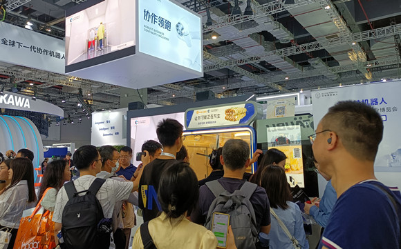 人机协作成为工业机器人展区的关键词之一。有别于传统的工业机器人,协作机器人可以与人合作,在多种制造业场景中得到应用。