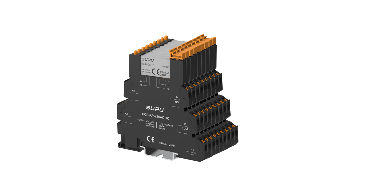 速普超薄型中间继电器厚度同样仅为6.2mm,底座采用直插式弹簧接线技术,性能稳定可靠,可与速普导轨端子、接口模块等产品完美组合,为客户提供全面的信号转换与电气连接解决方案。